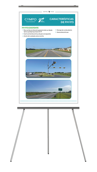 Scroll to the right to see all Meeting Exhibit boards. Click each Exhibit to review and listen to the recorded message in English, or click the icon below the board to view in Spanish.